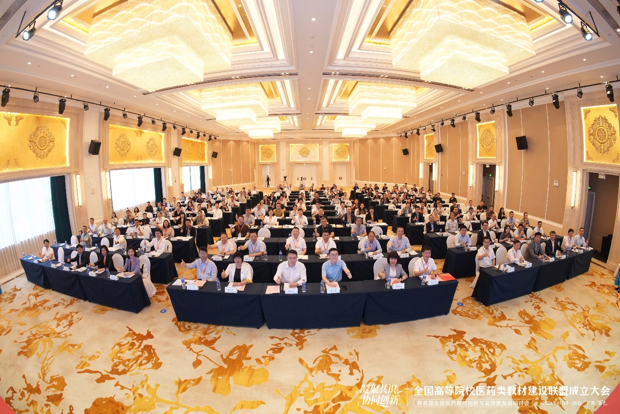 本次会议由国家中医药管理局教材办公室主办,中国中医药出版社承办,右江民族医学院协办。会议以“凝聚共识,协同创新——构建高质量医学教材体系,助力‘十五五’医学人才培养”为主题,汇聚全国70余所医药院校的领导、专家及学科代表130多人,共同成立联盟,共商医药教材高质量发展路径。
